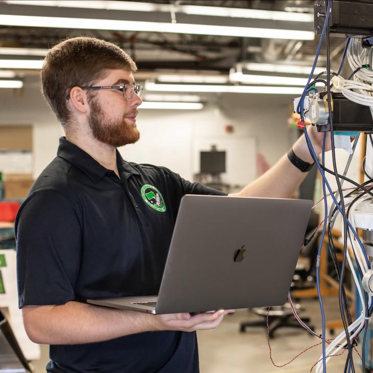 The Computer Science program provides opportunities to work hands-on in engineering laboratories nearly every day, culminating in CS 400/402: Capstone Design I/II. In this senior-level course sequence, students engage in a multidisciplinary real-world design and build experience, operating on a team to deliver a prototype of the design effort and present a report on its development and results.