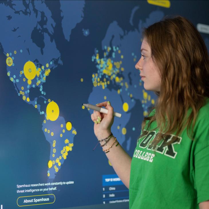 The Cybersecurity Management degree program at York College equips students to excel in all their future career stages in the ever-evolving field of cybersecurity and information security. Our well-connected faculty help students build lifelong networks across private and government sectors, with graduates finding careers in businesses focused on cybersecurity solutions, national security, and intelligence agencies, as well as roles dedicated to protecting information databases, applications, and computer networks.