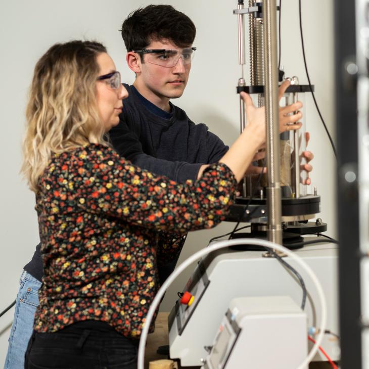 In the Thermodynamics, Fluids, and Heat Transfer Lab, students discover firsthand how combustion engines and air conditioners work. They also study topics such as lift and drag on airplane wings, piping and pumping systems, fluid jets, and flow visualization. Fluid interactions with solids and the resulting energy exchange are very important aspects of mechanical engineering, and students can see this dynamic exchange in action.