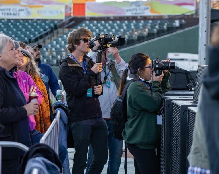 Experiential learning is alive and well at York College of Pennsylvania, and the White Rose Music Fest, held in October 2022, is just one example of how YCP helps students stay engaged with the local community. Students from the Communication and Writing Department had the opportunity to gain hands-on experience during the music festival. Professor Craig Do’Vidio’s Advanced Production class was on site for the duration of the three day festival, recording video and audio during musical performances. Throughout the Fall 2022 semester, Professional Writing major Alex Merritt ‘24 also continued work on an independent study that involved surveying attendees and writing an after-event report.