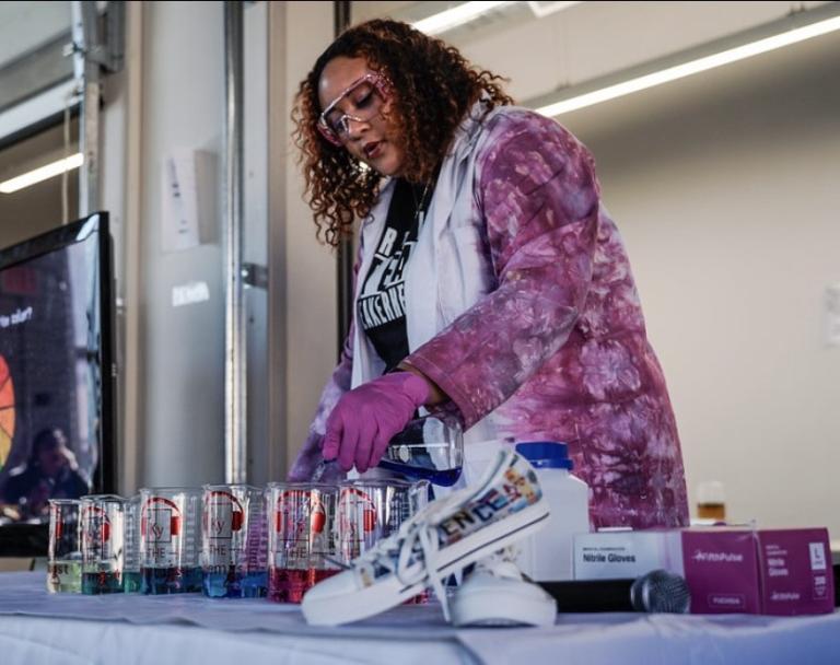 Ky, the founder of STEAM Sneakerheadz, describes her business as “fusion science”—a way to connect science, technology, engineering, arts, and math (STEAM) with sneaker and hip-hop culture. Her workshops and educational kits aim to revolutionize how students engage with STEAM concepts.