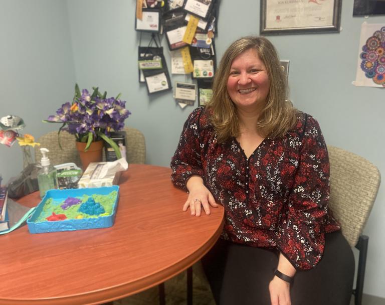 Kuresman tries to put something eye-catching on each wall of her office. The items represent her own values and travels. The goal is to have something for students to look at to help disarm them the first time they are in her office. She also wants them to see a little about her before they start talking.