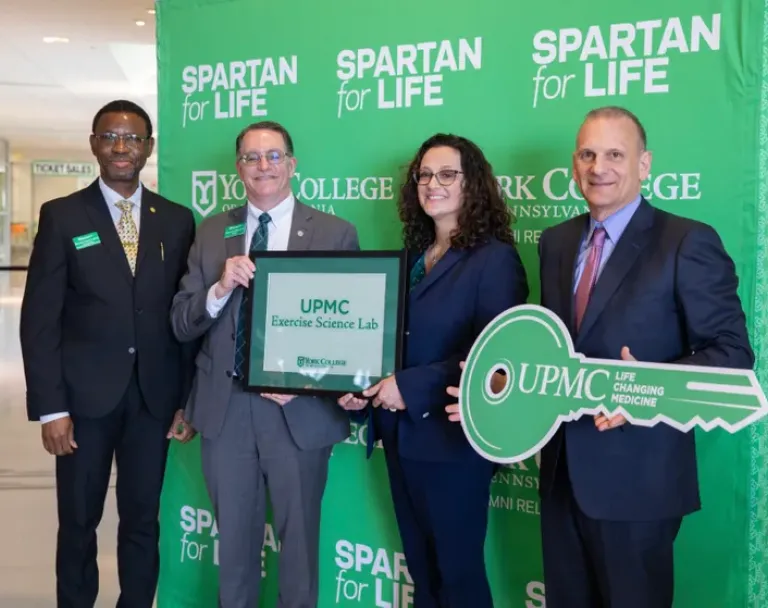 Representatives from UPMC in Central PA and York College gathered recently for a ribbon-cutting ceremony for the UPMC Exercise Science Lab at York College.
