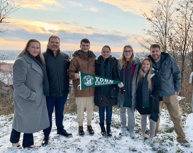 A group of four students, Cwiekala-Lewis, and Holly Sypniewski, Director of Faculty Development and Global Initiatives, traveled in January 2023 to Poland to visit the State University of Applied Sciences (SUAS) in Włocławek, an institution with which York had signed a formal student exchange agreement in 2021. Although this was the first exploratory trip due to COVID, students from both institutions had learned from each other previously.
