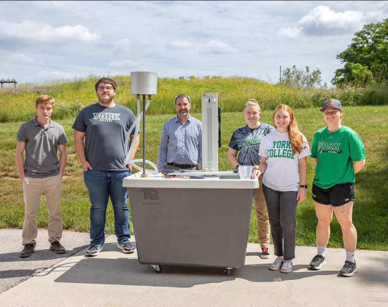 “The goal of the competition was to create a three- to five-minute video that explained an experiment, from setup to results to application, using equipment from TQ,” said Associate Professor of Civil Engineering Josh Wyrick, who guided the team through the competition. “The students were given free rein to investigate any topic they wanted using any TQ equipment. I was absolutely thrilled that a team from YCP won this year and that the winning team's dedication to this project was recognized and awarded.”Members of the winning team are Nathan Callis, a senior from York; Katie De Lange, a senior from Finksburg, Md.; Isabella Fields, a junior from Centreville, Md.; Aidan Hill, a junior from Oxford, Pa.; Tyler Hunt, a junior from Seven Valleys, Pa.; and Zoe Kluegel, a senior from Fairfax Station, Va.