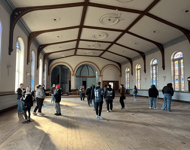 After several months of research, discussion, and design, the students will debut their exhibit on May 2 at York’s First Friday, a monthly celebration of downtown businesses and life. The exhibit explores the legacy of Zion Lutheran Church and the broader theme of building community through three lenses: history, church design, and the individuals and groups who have been influential throughout its history.