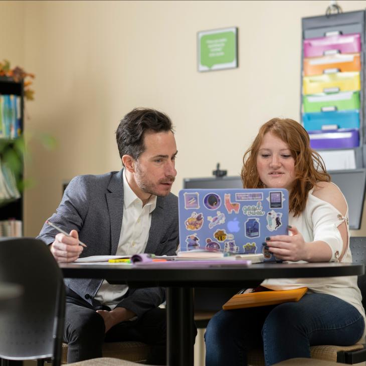 Professor helping a student on their laptop
